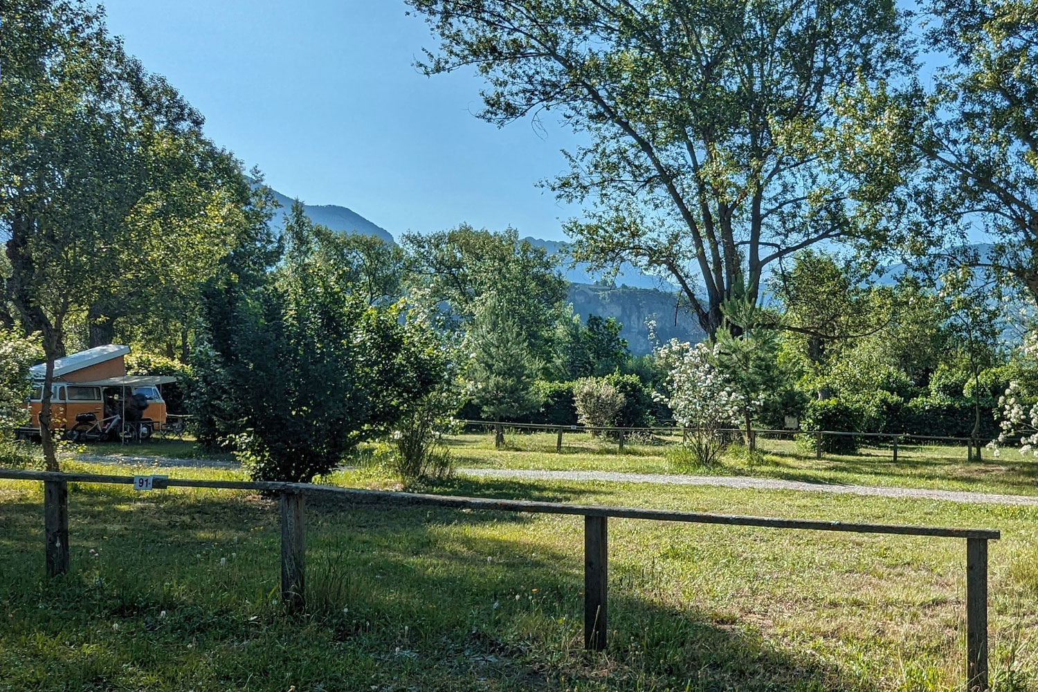 Forfait : 1 emplacement + 2 personnes + 1 véhicule + 1 tente ou caravane
